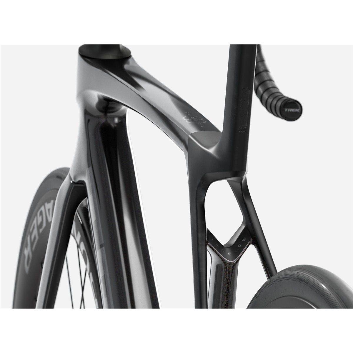 | Framgaffel: | Madone Gen 8 helt i kolfiber, koniskt styrrör i kolfiber, invändig bromsdragning, Flat Mount-skivbroms, 12 x 100 mm avfasad genomgående axel |