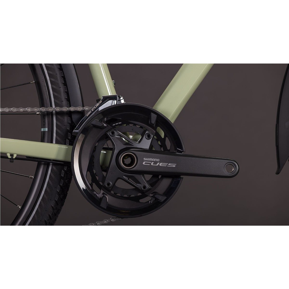 | Vevparti: | Shimano Cues FC-U6010, Hollowtech ll, 46x32T, Chainguard |