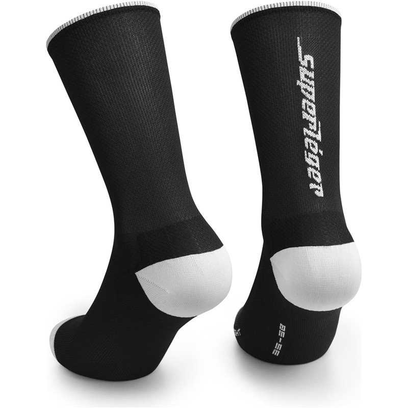 Känn viktlösheten och komforten med Assos RS SUPERLEGER Socks S11, designade för att ge dig en överlägsen upplevelse både inomhus och under de mest brännande tävlingarna utomhus. Dessa strumpor är en triumf av teknik och design, skapade för att möta behoven hos den mest kräsna cyklisten. De är otroligt lätta, endast 15 gram per strumpa, vilket gör dem till de lättaste i ASSOS-sortimentet. Den noga omkonstruerade designen inkluderar en något högre mudd som ger en strömlinjeformad och tävlingsinriktad silhuett, vilket säkerställer att du kan prestera på topp utan att kompromissa med stilen.