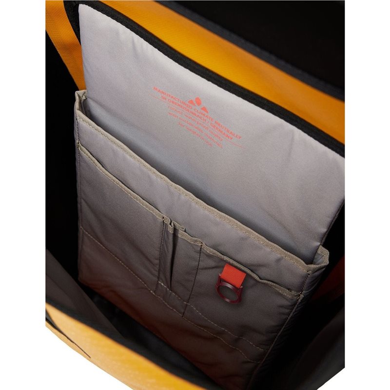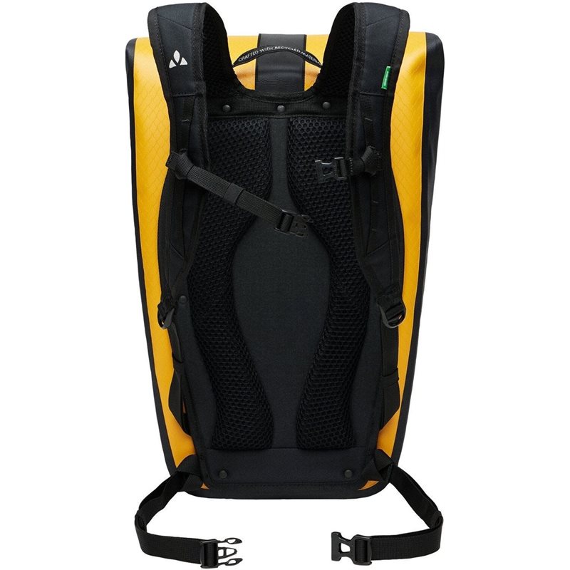 Den vattentäta svetsade City-ryggsäcken Clubride Aqua, med en kapacitet på 25 liter, är det perfekta valet för vardagliga cyklister på väg till jobbet eller för deras veckovisa matkörning. Den utmärker sig också som en pålitlig följeslagare på vandringar och stadsäventyr. Med ett rymligt huvudfack med en vattentät rullstängning och ett dedikerat fack för laptop, säkerställer det att dina väsentligheter är välorganiserade. Inuti hittar du flera glidfickor och en nyckelring, medan en extern vattentät ficka med dragkedja håller mindre föremål säkra. För förstklassig komfort har ryggsäcken en vadderad rygg, justerbara axelband och Vent-Comfort-fjädringssystem med kontaktrygg. Höft- och bröstremmarna på Clubride City-ryggsäcken är praktiska och kan enkelt tas av för dagligt bruk efter behov. Tillägget av reflekterande element och en hållare för ett säkerhetsljus bidrar till den urbana ryggsäckens tilltalande. VAUDE Green Shape-etiketten står för miljövänliga, funktionella produkter tillverkade av hållbara material.