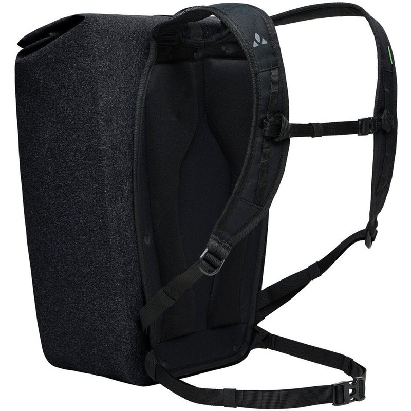 Snygg och mycket funktionell, 25-liters Clubride Urban City-ryggsäcken, tillverkad med vattentät svetsad precision, är din perfekta vardagsföljare. Med ett generöst fack för laptop, en rymlig huvuddel, flera praktiska fickor och en vattentät framficka med dragkedja, utmärker den sig både som arbets- eller universitetsväska. Det övergår utan ansträngning till ett fantastiskt val för dagsturer, stadsutforskningar och lugna vandringar. Den vattentäta rullstängningen, säkrad med en metallkrok, garanterar att dina tillhörigheter håller sig torra. För förstklassig komfort har ryggsäcken en vadderad rygg, justerbara axelband och Vent-Comfort-fjädringssystem med kontaktrygg. Höft- och bröstremmarna på cykelryggsäcken kommer väl till pass för cykelturer och kan enkelt tas bort när de inte behövs. Tillägget av reflekterande element och en hållare för ett säkerhetsljus bidrar till ryggsäckens tilltalande. Denna produkt är tillverkad med vattenbeständig Eco Finish som är tillverkad utan användning av fluorkarboner (PFC). VAUDE Green Shape-etiketten står för miljövänliga, funktionella produkter tillverkade av hållbara material.